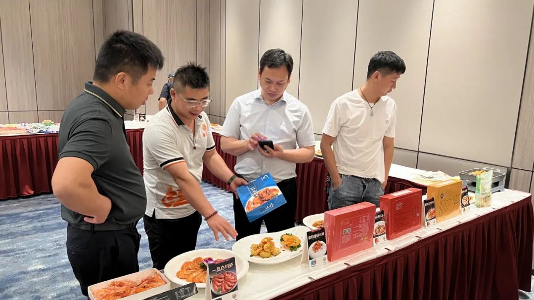 下午2点,嘉宾陆续到场签到。在工作人员的带领下参观大厅陈列的特色产品。以国联汉虾系列、美佳蟹柳及华体会在线注册2024年主推新品组成的近20款菜式琳琅满目,香气四溢,吸引了众多餐饮客户的目光,大家纷纷打卡拍照。现场咨询不断,来自工厂及门店的资深负责人从养殖、加工到菜式推广为客户做一一解答。